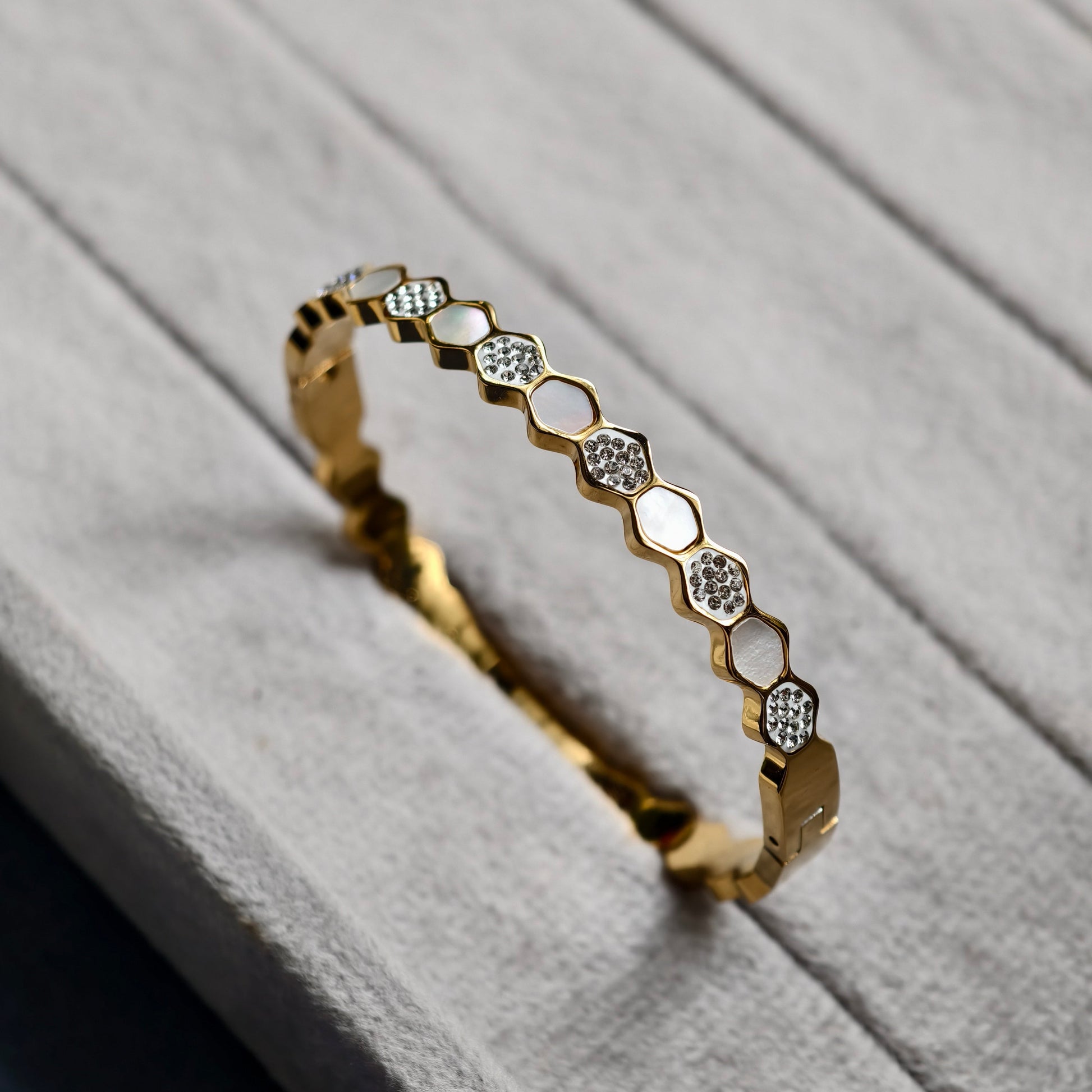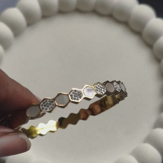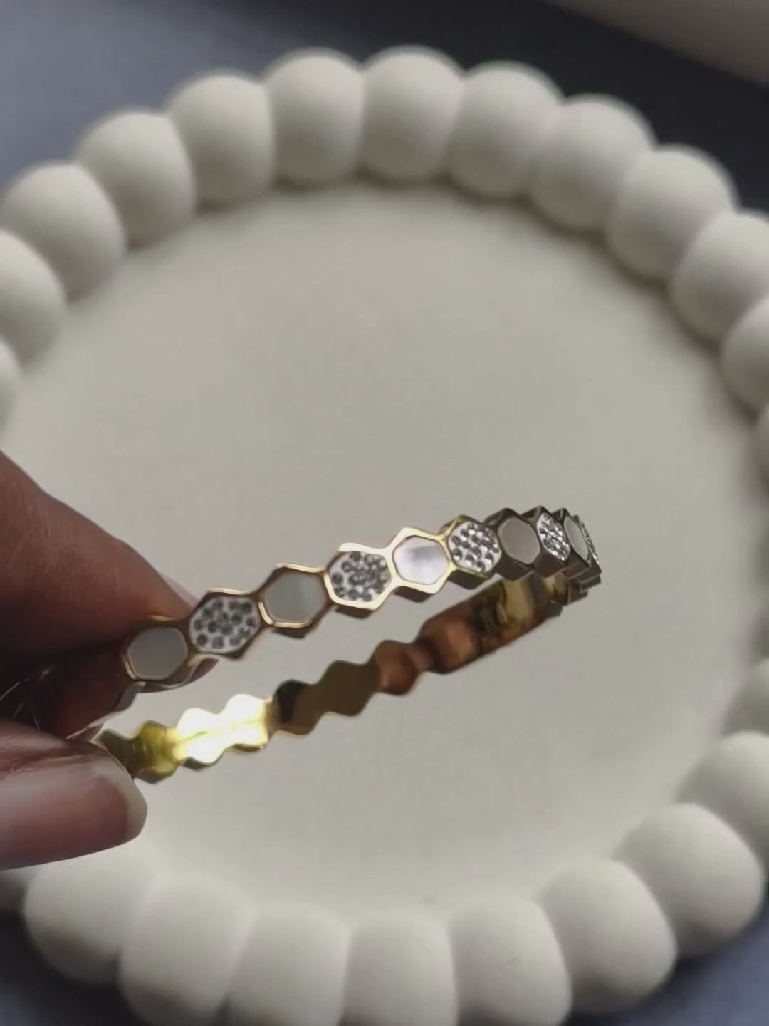 Confident, trendy, and effortlessly eye-catching—this Honeycomb Enamel Sparkle Bangle is made for everyday wear and guaranteed compliments.